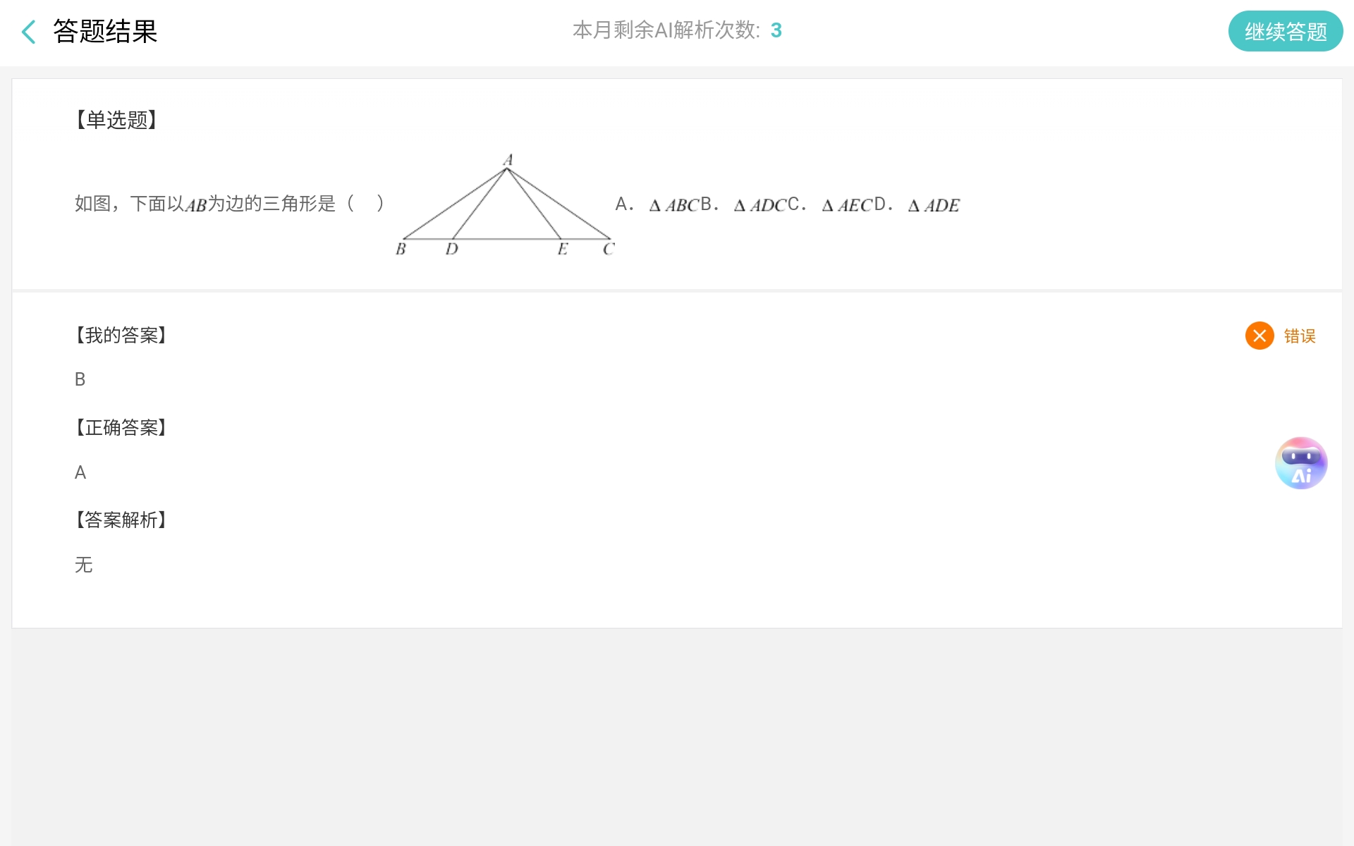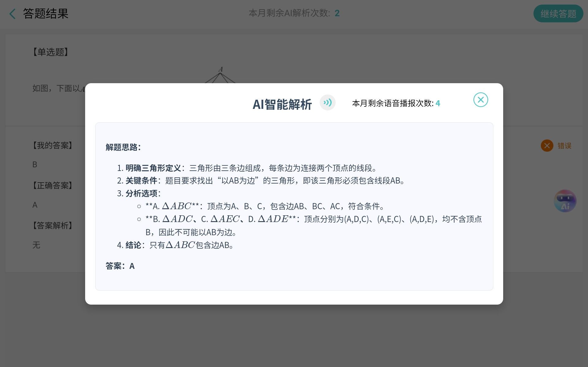为切实提升课堂答题环节的教学价值,平衡解决学生共性与个性问题,互动课堂答题接入了AI错题解析功能,当学生提交错误答案后,无需等待教师统一讲解,可即时调用该功能获取 “一对一” 专属解析。