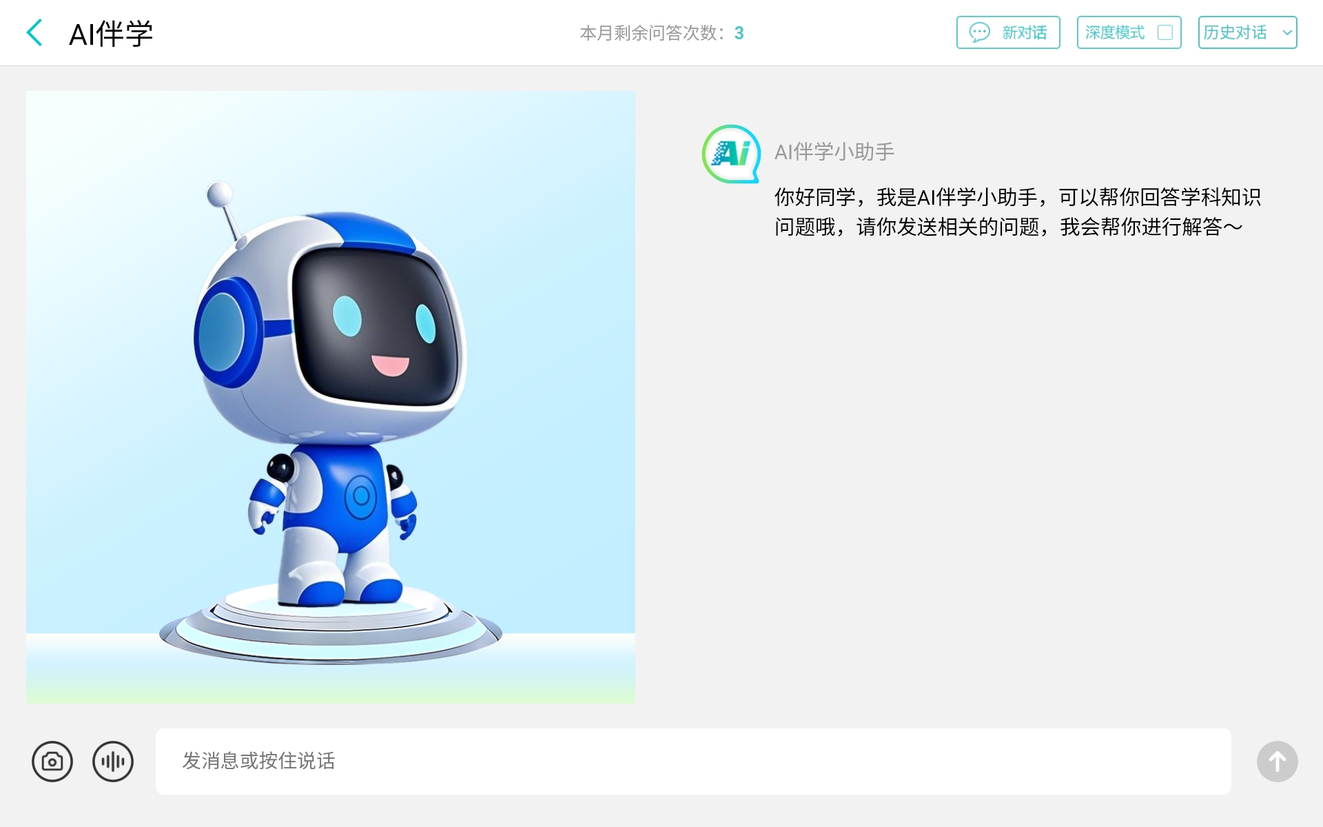 教师端打开AI伴学开关后,学生可以在互动课堂中进入AI伴学界面。当遇到知识点困惑或解题障碍时,无需等待教师讲解,可根据自身学习需求通过智能终端唤醒AI伴学进行一对一答疑,打破“疑问积累、学习断档”的延迟问题,让学习节奏始终连贯。