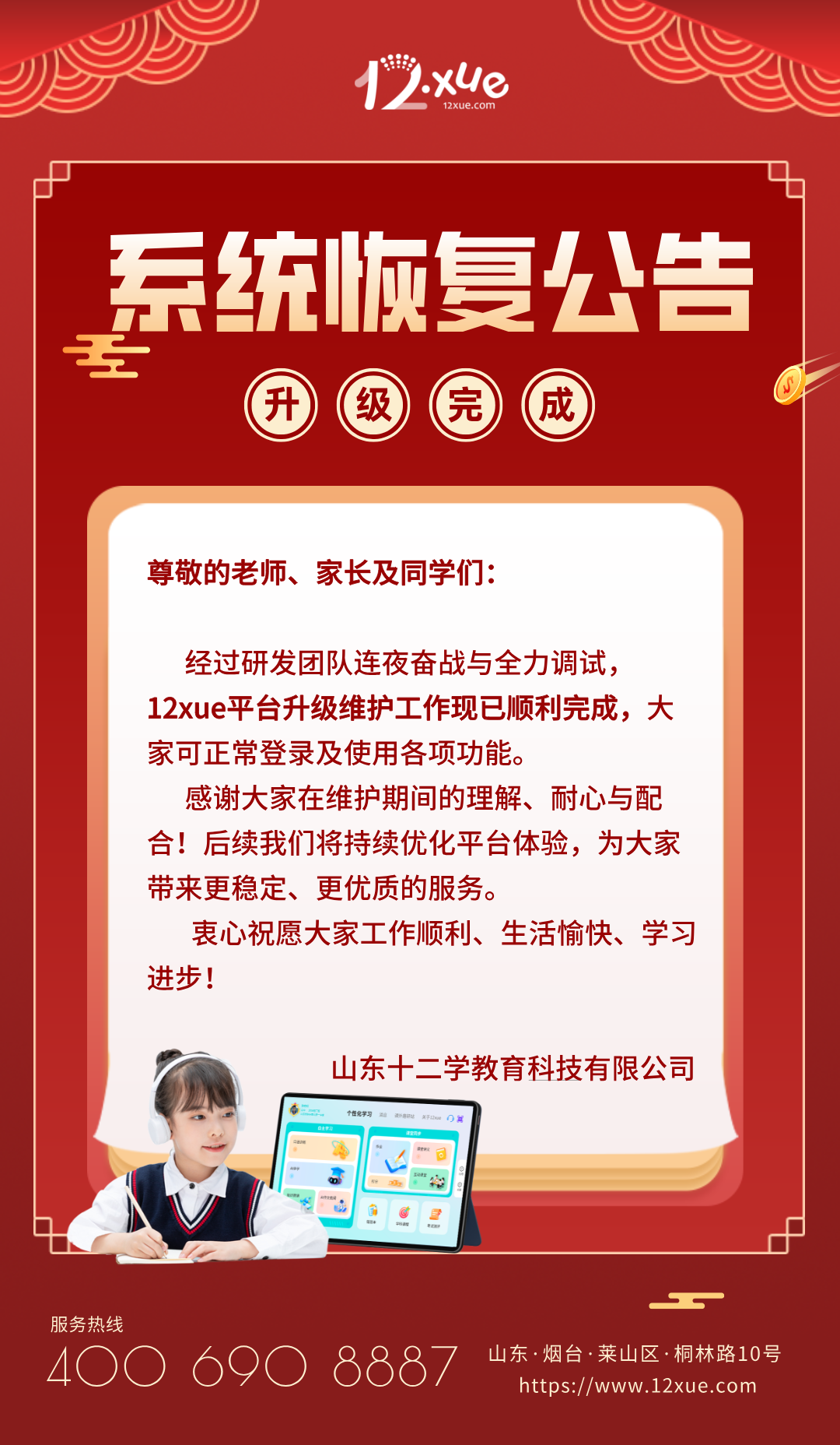 好消息!!12xue系统升级完成现已全面恢复!