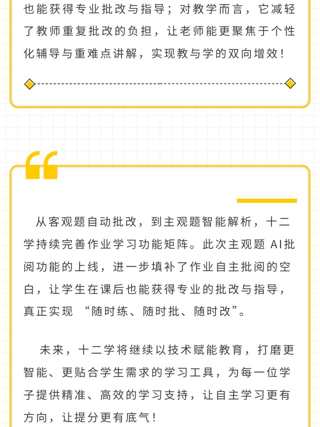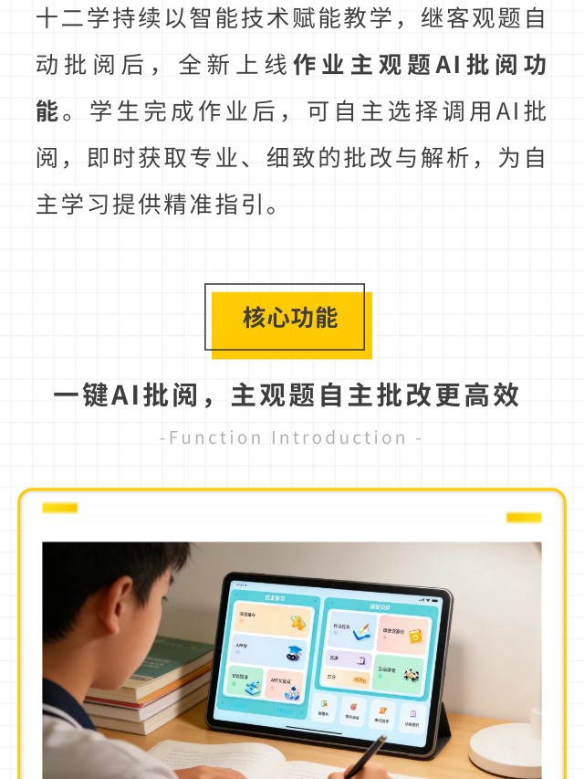 告别 “写完等批改”!十二学作业主观题 AI 批阅功能上线,让自主学习精准提分