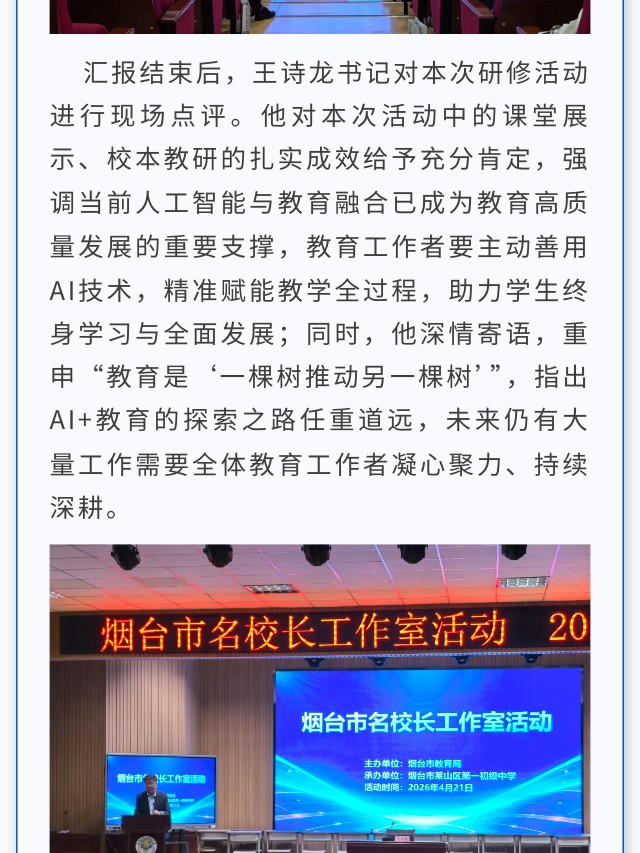 AI赋能,研思致远 | 烟台名校长工作室活动走进莱山区第一初级中学!